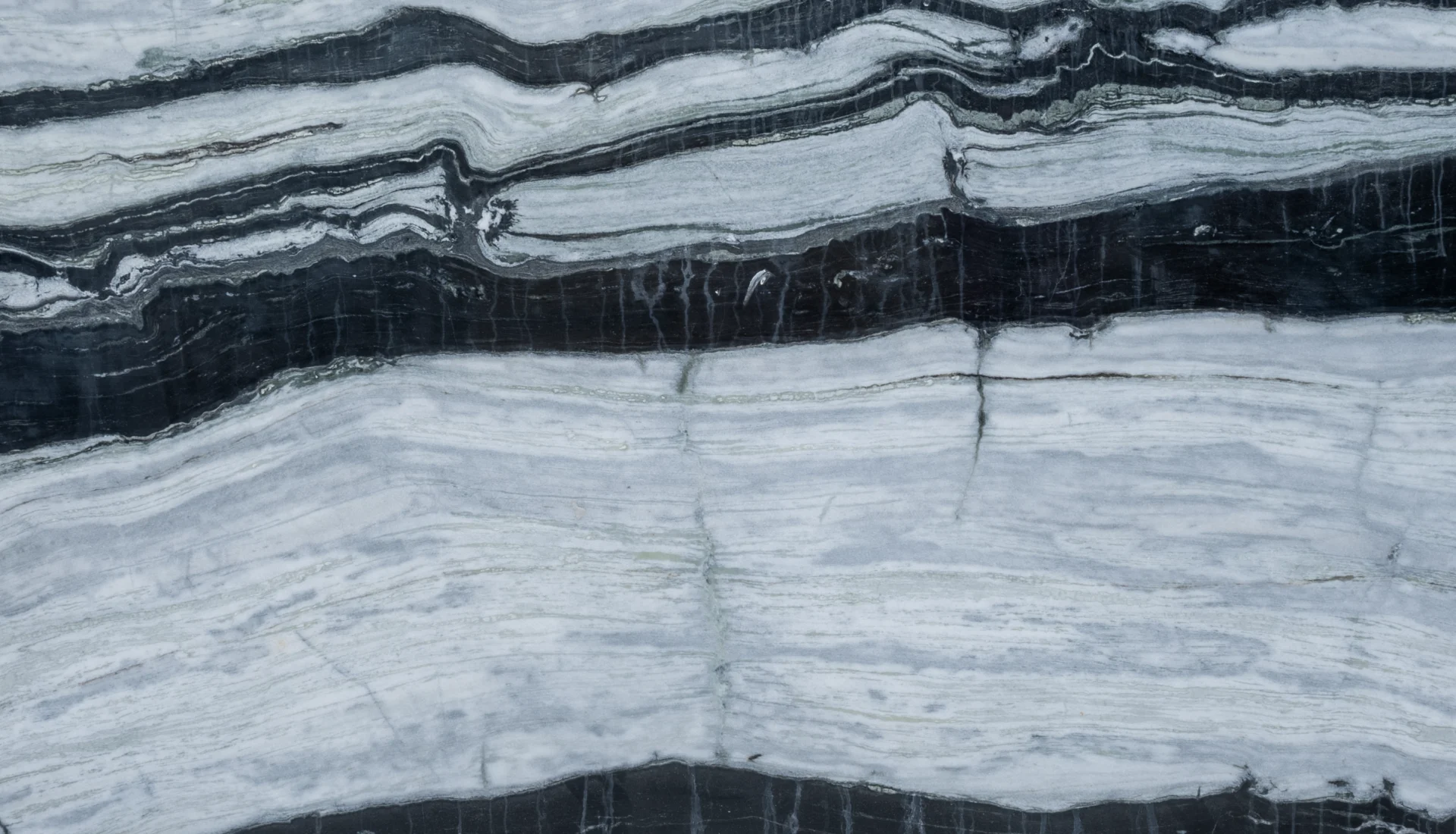 The dynamic patterns and unique movement of the veins ensure that each slab is one-of-a-kind, adding personality and visual interest to any space. Its sophisticated interplay of black and white tones brings both strength and refinement to interiors.